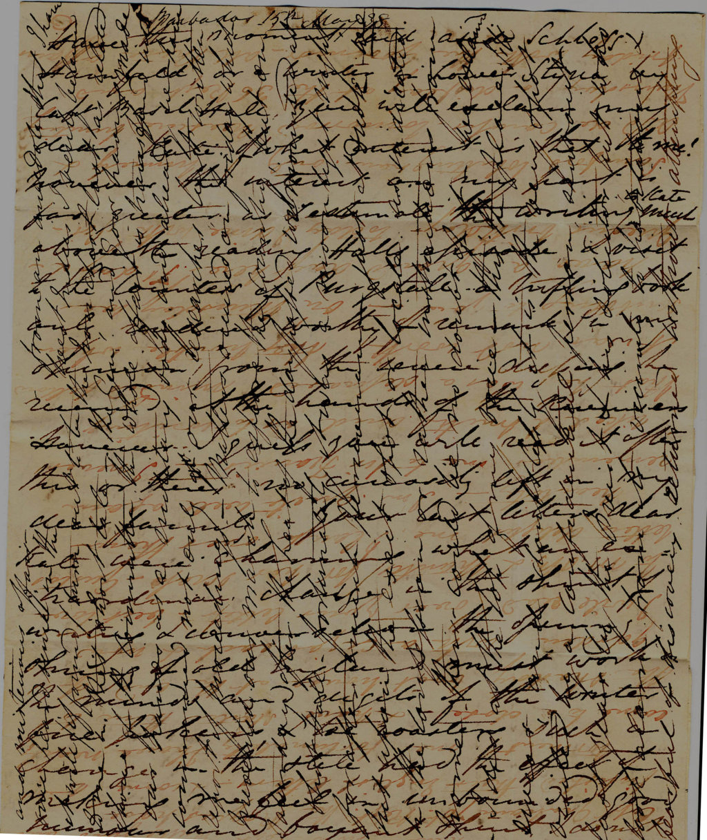 Have this moment laid aside Schloss Hainfeld or A Winter in Lower Styria by Capt Basil Hall. You will exclaim my dear Kate, ‘Of what interest is that to me?’ However, the interest on my part is far greater because I estimate the writing to Kate much above the reading Hall’s episode & visit to the Countess of Purgstall, a trifling book only considered worthy of remark in my opinion from the severe dressing he received at the hands of the Reviewers. However I guess you will read it after this or there’s no curiosity left in my dear family. Your last letters dear Kate were charming – what an extraordinary change in the spirit of writing & conversation. The opening spring of old England must work on the minds and digits of the winter fire pokers & toe roasters. Such a change in the stile had the effect of making me feel in unbounded good humour and boyant spirit. I do not think I have felt so gay and light hearted for months as I did after reading your last packet. Try on my good wife & let the next be equally lively, with an account, I trust, that Isabella and other winter invalids are convalescent and upsetting Kate’s flower beds. May 15th: The seeds you sent were excellent, particularly the lettus and beet root. The latter has often been enjoyed by the Genl who is remarkably fond of it. And now my dear Kate let me tell you a wee tale that will raise you curiosity to a high pitch and the following letter to this will be looked for with extreme anxiety. Names and other particulars must as yet remain a secret. ‘A secret’, all my dear party at Wickham will exclaim, ‘what fun – only think Mamma, a Secret!! Well now, do let us hear the secret!!!’ No, no, my life, I can not divulge all at once, it must serve at least two letters. However, to commence, you cannot intercept me. On Wed last I attended the Governor’s levée at Sir S Whittingham desire to meet him there & consult with his Excellency respecting the model I have had made for renewing the Pier Head at Bridgetown, but this is not the story, but I must have my own way. I was recd most graciously and passed rather an agreeable morning. On the Thursday morning very early I got this: ‘My dear Col, the Gen wishes to see you tomorrow at 10 oclock precisely on particular business so do not fail to come at that hour, yours very truly, H Bates, Unionville, Wed evening.’ Accordingly your old man mounted his long tail & found himself in the presence at the time appointed, first of coming, but not a hint was given of the matter about to be broached. Presently Col Maxwell 36th walked in and after some time the Depty Judge Advocate. ‘Hello’, say I to myself, says I, ‘what on earth is now going to pass?’ Now dear dear Kit, keep the cream of this to yourselves until my next account reaches you. ‘I request, Gent’, says the Genl, ‘I am about to require your services on a matter for which I form you as a committee, that must be kept secret until the necessary measures to ensure every chance of success have been put into action.’ On this we read the Dispatch from the Govr enclosing a correspondence from the Government at home stating that reports had been recd that treasure to a great amount in an iron box had some years back been secreted by a party of soldiers for which many thousand £ had been offered for its recovery. Nothing had ever transpired respecting either the sum lost or what or whence it amounted to or come from. The particular points that marked the spot where it is supposed to concealed was given as being the confession of the only living soldier of the party to a Catholic Priest in Scotland, whose name is given. Since the first offer to make the discovery he has died about the end of last year, thus the Solicitor has become the soul person that could give any intimation of this extraordinary and misterious affair. From an anecdote that I have once heard since in the West Indies, I verily believe it will, if found, turn out to be the Iron chest lost as related to me in that short tale. The Genl and Govr having made choice of the committee, the whole affair is transferred into our hands as a military body and already we have commenced not only our researches but written report of proceedings. Matters occured on friday which prevented our march to explore the country, but on Saturday, after the heat of the day passed we mounted at Shot Hall – fortunately it was a moonlight night – for after much perseverance just at dusk we hit upon the exact spot or locale as indicated in the confession or rather instructions from home. Their could be no doubt of it, we exclaimed – I did at the top of my voice – ‘This the place I’ll swear’ and doubtlessly it is the very spot visited by a confidential person sent out last year by the Priest & his solicitor, but who took alarm from its vicinity to habitations, & fearful of discovery, returned without attempting to excavate. In fact a single person would be mad to make the attempt as he would either be taken up as deranged, or if successful, as connected with the parties who took the Iron chest into their own keeping. Well, we returned much pleased at our success & the interest it caused us, we dined together &, heartily fatigued by our 5 miles out and 5 home &c &c retired to bed. I slept sound & thought not of hidden treasures. Some of the party, however, told me that they were dreaming of the affair all night. For my own part, I am not sanguine as to the recovery of this money stated to be in doubloons, half Do & other valuables. Say not a word dear Kate of all this until you hear again. Such a strange tale might get into the papers before the official reports reached home, but I do not hesitate to give this account without divulging any part of the secret to amuse & make you enjoy every conjecture that has been passing in our brains as the whole will be developed tomorrow or next day. Tonight, a party of picked men as a guard with a supply of poudre & 