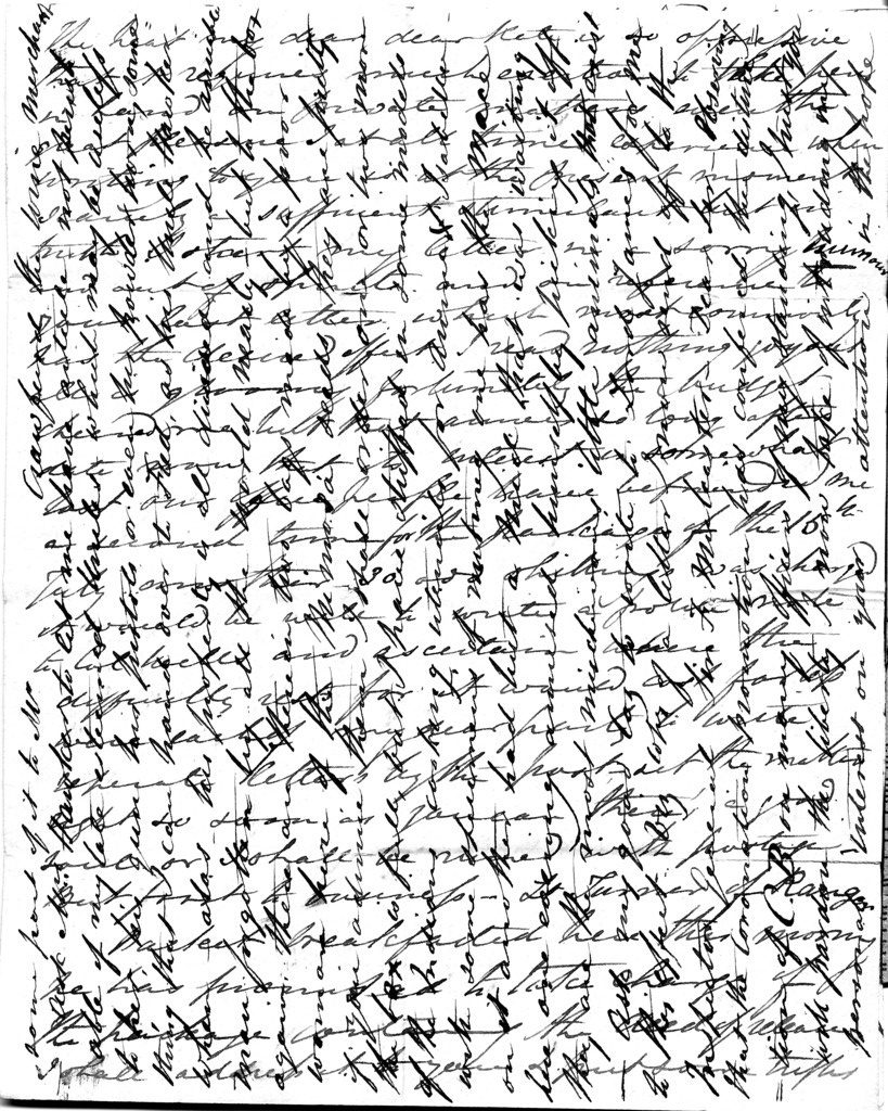 The heat my dear dear Kate is so oppressive that it requires much exertion to take pen in hand on private matters, even the great pleasure I at all times experience when writing to you is at the present moment scarcely a sufficient stimulant, but in truth I start my letter in a sorry humour and out of spirits, and on reference to your last letter which most commonly has the desired effect I read nothing joyous, all is gloomy. Fortunately the budget cheered me, but that arrives so long after date now that its interest is somewhat lost. Our office people have befriended me a second time, for the package of the 15th July another 30 odd shillings was charged. It would be well to write a polite note to Col Wells and ascertain where the difficulty rests, for it would cost far less were each of my dear party to write separate letters by the post. Set the matter right so soon as you can, there’s a good soul, or I shall be ruined with postage. But first to business: Lt Turner of Ranger Packet breakfasted here this morning. He has promised to take charge of the package containing the deed of release. I shall address it to you & put some trifles in the parcel with it for my dear lassies. The time will be but short to collect, therefore shd I not send for all 4, the neglected shall be thought of by the next opportunity. By the same I will give a reply to Mr Kelsall from whom a letter has reached me for the purpose of giving a brief statement of my late lamented Uncle’s will, but between ourselves for little other purpose than to enter upon a lawyer’s correspondence with me. Had I not seen a copy of the will forwarded to yourself, his letter would not even have afforded me the information that I was one of my late Uncle’s executors. These people mystefy on purpose. However, the principal object of his letter appears to be to obtain my consent that a codicil in the testator’s hand writing & signed at the foot of the Will, should be carried into effect, which by some defect at law is a nullity, being unattested and excluded from proof. He writes as follows: ‘It is however the wish of all the parties in England, viz Sir John English, Mr E English & Mr H Hawker, to have it nevertheless carried fully into effect & if your brother Charles, to whom I shall ford a similar communication, & yourself, concur in this feeling, the defect at law can be covered by voluntary relinquishment to Mrs Hawker of your respective interests in the property specified in the codicil.’ In reply I shall of course consent with the rest of the interested parties. The answer will pass thro your hand, consequently you will make known my wishes are the subject & pass it on to Mr Kelsall. 9th Sept: Not so sultry and, were it not for the host of mosquitos, I could write you a steady long letter, but it is useless to attempt to please you. In your last you tax me with every thing that is bad – my letters are cold &c &c and I am extravagant and you still cry poverty although your income is greatly increased. In no case have I exceeded nor have I [word missing] to the extent of my command pay for [word missing]. I have no doubt that on reference to the abstract you will find in addition to the 19£ command & extra allowances due to a large amount, but my paper is too confined to give way to recrimination, but I do sincerely wish you would not indulge in filling yours with the everlasting allusions to the nothingness of every thing earthly, being weaned from this world, divine Grace and much more. That you are perfectly right there is no question, but there is a time and a place for all things certainly, and a letter from the other side of the Atlantic which usually causes such delight, and from you, generally such a perfect solace to counteract the everlasting torments and vexations I have constantly to encounter here is a grievous disappointment when opened and I find the greater portion filled with a subject that’s kept better to one’s own bosom as reflection for the closet. I can always discover when you have sat up too late, too much company, bile or the weather gloomy. Cheer up, good wife, we have to get on in the world yet and must not think ill of it, for both you and I have much, ah! very much to be grateful for. With all your paper preaching, I suspect you think more of it than your abused lord. I almost dread the lectures on my return, still am most anxious for the trial. In the small box that Lt Turner takes charge of, you should find the deed of Release, two letters, one to dear Mary to pay the 159£ &c to you or order, and the other to Mr Kelsall, the above sum you can use as you deem best. If possible I would buy in a hundred of it. At all events do pay some part of it to Mr Crawfurd the wine merchant. Ask Mrs Hawker to let me have article, not perishable, of my late esteemed Uncle’s which may be useless to her – his gun, his pistols or even his powder horn, something that I can hand over to Fred as his ‘Uncle Hawker’ when, alas, his property is all divided and he, amiable man, forgotten by all the world nearly. But to the box again – there are therein two bags made by a poor woman here of the Mimosa seeds, they are pretty if you admire them. I shall order one or two more. The box is full, but I have stuffed in some models of the Indians’ cooking utensils for Annie & Isabella with some specimens of nutmeg. One has the Mace on it, but a Mid that was waiting here one evening amused himself by picking it off. They are the most mischievous little animals that exist. Ask my good Coz to write to Lord James for me to this effect, viz, copy of a letter I now send off to the Inspector General Sir F Mulcaster, ‘Dear Sir, Observing that the Coronation Promotion has conferred the distinction of CB on many officers of my standing, I trust you will pardon the liberty I now take of intruding my personal interest on your attention in the hope, should a possibility exist of obtaining the companionship of the