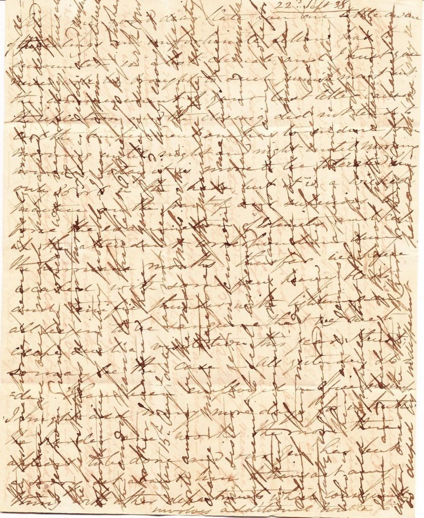 Ah! my good dear Kate, you are little aware of the feelings an unfortunate fellow has to encounter in hot climate, and I trust you never will be brought to such punishment, but the commencement of your last letter caused the reflection and the closing did not tend to cool the temperament one has to endure from morning until night and night until morning. However, today it is more to be tolerated being only 85 or ‘6 in the shade, but it is a wicked practice on the part of our superiors to force the examination of Estimates and keep up the attendant correspondence during the hurricane months. Thus far we have escaped with some few heavy blasts and terrific thunder with lightning and all begin to be sanguine that we are to escape such a visitation this year – I trust so may be the case. All yesterday & today I have been employed in office business. I might add many more days for in truth the harder one works the more there appears to be done, and our Genl has but a sorry set about him to transact any thing with other departments, which consequently involves additional trouble to all, for he has not a soul about him that understands business. All young helpless men or old women. If this were to go to the Horse Guards, what then? I should have to take up the shooting Irons with all in my own defence. So Mr Green reported me superlatively happy – my countenance most certainly was not an index of my mind on the occasion for his embarkation, but I suppose, poor man, he repeated what I told him to say, and so would the poor Macaw had it lived, that I was as happy and contented as I could be without the comforts of my family. The birds could not have met with fair play, however they were a present to me. Some few may serve to ornament English Hall yet when I return. The Tamarinds were the produce of my garden, preserved by Charlotte the washerwoman of whom Capt Tait knows the black phiz. Tell him the poor thing is very very ill with liver complaint – I doubt if she will ever be good for much. You might have been more complimentary as to the handkerchiefs. Their value was trifling, still the intention of shewing you the costume & stile of head dress was at all event in me disposed. As to your wearing them, I never gave it a thought, but I can inform you that few today go from hence without taking the pattern of the tie so much admired on the french of these colonies. They have amused the children and I am repaid for any trouble I took in forwarding them, for truly, everything of the most trifling nature is trouble and required exertion, even to eating, drinking or changing the clothes. Thank dear Gusto for his short note – it was most acceptable. What took him home so unexpectedly? Whilst I think of it, tell my good friend Capt Tait that his pet hospital is to be reconstructed – orders came by the last Packet, his recommendation shall be attended to. The son of an old friend of his, a Lt Reilly 1st West India Regt, has got into my good graces and I have applied for him as an Assistant Engr. He will go to Tobago, the Genl has authorised it. Lt Mould & his wife with three children joined here after kicking about at sea for 13 days from Grenada the day before yesterday. You must recollect him at the Base and he dined with us in company with Capt Pringle at Stalleen when Johnny was appointed a tithe or poor law commissioner. They lost one horse & were nearly making their departure – are very much harassed but delighted to get from Grenada which was very sickly. Thus all the pet stations get their turn. Fred is giddy and misses opportunities of writing probably. I heard of him quite well the end of March last thro Capt O’Brien 70 Regt who has a brother quartered there. Your package due with your letter 15th Augt date has not been recd. Likely enough it will arrive by the next Mails with a seven dollar charge. Much therefore of the miserable tale respecting my sister is yet unknown to me, but I have sufficient to feel extremely unhappy and miserable on their account, nor can I forsee any hope for relief. Their minds, as you observe, must be totally regenerated. How they have been led on, who is their evil genius appear to me a mystery. Could it be possible that three persons with common sense and feelings of the most trifling attachment to either one or the other of their brothers could have been duped by indifferent persons? Ah me! my return to England will be attended with some most painful reflections. I at times wish you all here until I mount my horse & meet pale faces, sickly children & every thing that is detestable. But abroad we must go. I have half a mind to get home on leave in the spring if they do not relieve me for some months & then settle whether to thro up this Comd altogether & wait for employment or return with a part of my family, for in truth to be pestered on all sides with official matters and worried from home is not to be endured. Even my elastic temper or disposition as you term it is overwhelmed by constant irritation from one source or the other. I’ve written enough today, am cross, so adieu dear Kate. 23rd Sept: Warm, more officials from the Military Secty. I wrote such a polite letter to Genl Chapman, but of course every officer must take his tour of duty as the chance of the service offers. Lt Chapman is doing well. Poor little Mould – I was very sorry at his loss. Lt McCausland would have remained here had he shewn a spark of energy but I could not extract any out of him. He had lived with his mother all his life. Already I have an application from him at Berbice to be removed. This I would willingly do if they would send me officers. Now let the Cocoa Nut story rest. The trees were nearly all blown down at the hurricane. Others are planted and if you will come out for a few years they will repay, it is said, about 1£ each tree pr Ann. Otherwise some less extravagant person than myself will benefit by their predecessors’ planting. There ends the Coco