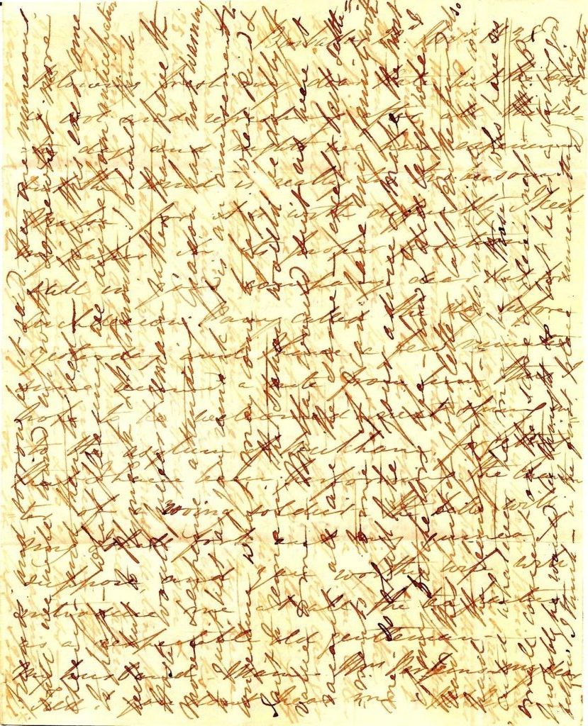 Blowing fresh my dear Kate but the weather is cool and refreshing after all the sultry days and nights we have experienced, but the wind is really too troublesome Massa for it is with difficulty I keep my paper in its proper position. Still in good company dear Kit for Archdeacon Parry called the day before yesterday and I have a few minutes since received a note from him. Thus I hope to be welcomed next spring in to the asylum of Wickham forgetting that I have been performing the character of a roving soldier. The bells will ring, I shall fork out my guinea I suppose, and you, worthy wife, will introduce me at all the tea parties as a respectable old gentleman: ‘My husband Mam, Mrs Perkins my dear Fred! You don’t hear me: Mrs Perkins, a particular friend of mine and plays cribbage beautifully’. Your last letter 15th Oct was in truth a charming one written in some thing like good spirits – it has left me in good humour ever since. I must now go thro it or I may receive several wiggings in addition to the numerous ones already scored up ere I get my legs on shore in Great Britain. The trip to Southsea appears to have done you all infinite service – remember me to my good Uncle & Aunt at the Terrace. Capt Tait seems to perform as your ADC. He is a first rate, a good officer and an amiable man. His friendly attention to my family is very flattering, as I feel that the motives that first prompted him was his friendship for me. However, you are valuable acquaintances to any person, therefore it is fortunate that he found you out. The chair, I trust of red Morocco, of the Comdg RE Portsmouth will not I think be filled by your loving lord, more likely one of the Comds of an Irish back settlement. Should such an arrangement be made we might like it and much trouble & expense would be saved. When I first entered the Army I have thought, if ever I should be comd R Engr at Portsmouth it would be the height of my ambition, and now I should be still looking higher. I used to think if ever I arrived at a rank eligible for such a command, it would be at an age with double barrelled wig, worsted stockings over my knees, & black cloth shoes, but thank God for a fine constitution. If it should be my lot to be stationed there I might yet have a gallop with the foxhounds or, possibly, a step down with the Harriers. When the evening would be passed, my walnuts ready cracked, remarks on the reading of the morning, an occasional uproar produced by some of Caro’s tricks played upon her poor old father – sad girl – dear Kate’s music & chattering, Annie’s drawings &c &c, with the lively antics of that old maiden lady Isabel Louisa of Cat fame, and a renowned dog teazer. Candles to bed when the elders draw round the fire. Miss Parker looks very wise, index of her mind, & we talk matters over of lost friends and sorrow, be it said they are numerous. Still, we will wind up with somewhat more cheery, and then to bed. Will this ever come to pass? What pleasures we derive from anticipation. Well, but to Plymouth & Portsmouth. I should think Hoste would prefer to remain rather than have the move & expense attending. Gradon has not warning to quit, but as you remark it is an amusement to conjecture what may come to pass. Where Reid & Tait to remain, the station would be doubly of value to me. Malta would suit us were it vacant. All are the same – except back settlements – to me, if I can have my family with me, so shall take your advice & make the most of my batchelor’s life. How I did laugh when I read that part of your letter. Capt Rutherfurd also had the benefit of it. I do not find him conceited, whatever he may be to those who have no small conceit on the score of cleverness – Mrs R – probably he would be thought so, but he is a sterling fellow I think – in the first place unremitting in his duty, an excellent companion whose conversation is far above the common rubbish of most military men. Lt Tinling, of the Alban steamer arrived from Jamaica, has just called to offer his services in taking home what ever I may have for you – I shall send some few articles. He is a fine young man, all heart and soul – will tell Admiral Sir E Brace, with his best wishes, that the Alban is hors de combat & makes the best of her way home by Bermuda, where he goes first in the hope of meeting the Admiral. The Alban leaves this about the 28th Inst. He is all alive about getting out of this little worn out steamer. He promises to see you all. The first thing, he say, shd be 7s worth of gig hire for Wickham, where I tell him he is sure of a hearty welcome. The 52nd have arrived and the 36th departed in the Hercules, Capt Nicolas, an agreeable sailor like person. I asked him to chop it with me but he sailed – I met him at dinner. Major Cross 36 died on board a few hour after he embarked – poor fellow, he over exerted himself, was well enough before. I felt his hand feverish on shaking it when getting into the boat. The first duty the 52nd had to perform was to follow this brave soldier to his last home. ‘Why, soldiers, why should we be melancholy boys?’ & so on. It was an unfortunate beginning for a new Regt & I think they felt it, several being exceedingly overcome. On the 20th inst we buried a fine young man, Mr Gough 52. A relative of the same name 33rd an two others have been in a dangerous state but I hear they are a little better this morning. Thus the interior it would seem is completely subject to the control of the mind. One is a Mr Jarvis, who on coming into the Bay enquired for Capt Jarvis 70th Regt, his brother, when he first learnt his death in Grenada. Lt May 70th of Belfast is also gone. The mortality has been great in that Colony, they all have their turn. Did I inform you I recd a long letter from Major Gosset, very very kind old broom? They like Jamaica & wish me to come and see them. I cannot get round my own command for the [At this point he turned over the page and appears t