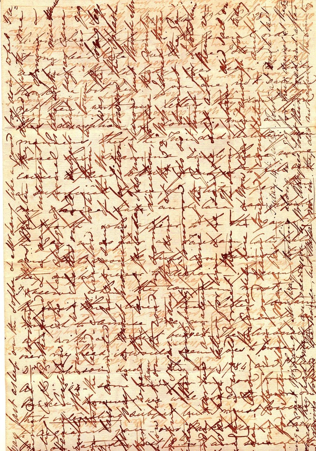 As letters were charged according to the number of sheets, a larger sheet, in this case slightly smaller than foolscap, would accommodate more words at the same cost, and perhaps avoid a third coverage in red ink, which had clearly given rise to comments about illegibility. However, the temptation to use red ink proved irresistible.