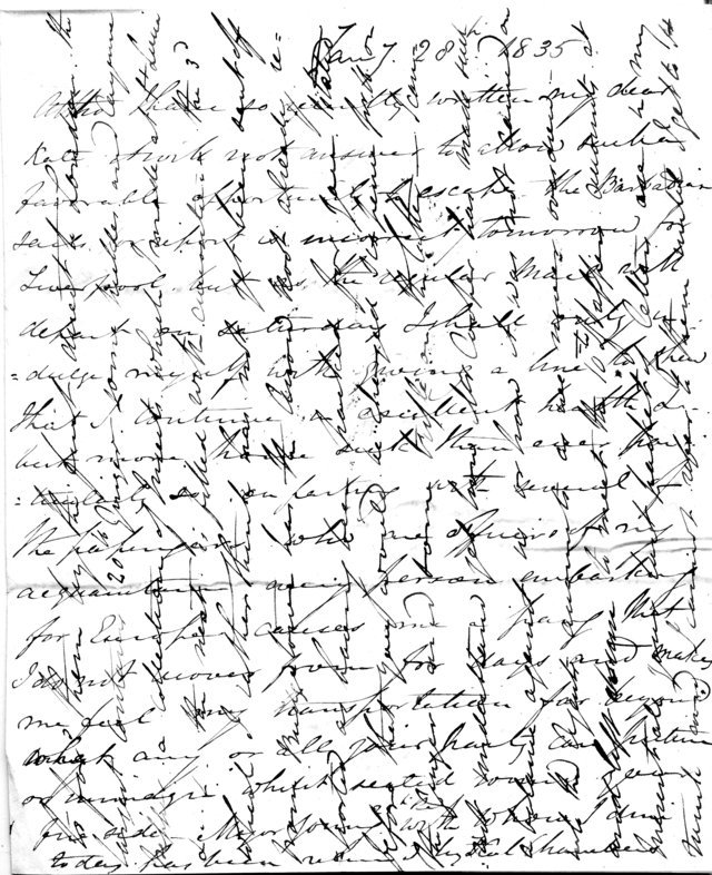 Altho I have so recently written my dear Kate, it will not answer to allow such a favorable opportunity to escape – the Barbadian sails, or report is incorrect, tomorrow for Liverpool, but as the regular Mail will depart on Saturday, I shall only indulge myself with giving a line to shew that I continue in excellent health &c, but more home sick than ever, particularly so on parting with several of the passengers who are officers of my acquaintance. Every person embarking for Europe causes me a pang that I do not recover from for days and makes me feel my transportation far beyond what any or all your party can picture or immagine whilst seated round your fire side. Major Young 25th Re, with whom I dine today, has been relieved by Lt Col Chambers since he landed from Demerara, & embarks tomorrow for old England with Capt Ward, relieved by my friend Capt Martin 76th as Assistant Quarter Master Genl under Col Tyler. Ward is a son of the late Sir Henry Ward’s & has twelve months’ leave of absence, by which time the Royals, his Regt, will return home. Lt Drought 65 is also of the crew, ordered home on promotion to join the Depot on leave, and our old acquaintance James Smith, son of the late Col at Cheltenham of the same Regt has already departed. These constant changes at Barbados unsettle me exceedingly, so much so that I almost wish myself and trunks safely lodged at St Lucia. My cottage on Mourn Fortuné will appear like home by comparison and it will afford several days of amusement in unpacking my kit for airing &c. I have just recd a note from Mr McCleary, the owner of the Brigantine Heroine, stating that she will sail on friday. Thus I shall land at the foot of the mountain on saturday morning &, as the Mail boat leaves Barbados on that day, I shall just have time to write that I have reached my old quarter after cheating it out of 4 months’ residence in the rainy season, which Capt Martin represents as having been incessant. I did expect to have left this at the latest today and had refused driving with Mr Filder, D Commissary Gen. Filder, who gives a fling off, but as my craft does not start I have accepted Young’s invite, well knowing that the little Batchelor’s table is filled. Tomorrow the Belvidera officers give a Ball, which I suppose it will be my fate to be present at, notwithstand my excuses have been received. From my window I observe preparations – covering in the deck &c, but you are greatly in error if you suppose I enjoy these affairs – in truth it is perfectly an effort to join in them, and I make it really because it is necessary to be seen at these meetings or have the credit of being less creditably engaged and become moped with heat & want of exertion. How gladly would I change for the seclusion in Wickham which you remark upon. I write in allusion to your last letter which was not penned in the best of spirits. What are our new Ministry to do for us? Where is this long looked for Brevet? Not forthcoming, I verily believe. The boxes I reported on in my last letter will not leave Barbados for a week or ten days as the ships now for England go to Liverpool & the carriage would be considerable from thence. My friend here Mr Haley has promised to ford them by the first direct to London. The largest contains 20lb Ginger, some pickles and Cayenne pepper, a collection of Insects which I made at St Lucia &c. The next is filled with curiosities. The 3d, which I rather think has not yet been sent off from Bridgetown, has the Arrow Root already reported as having been packed for you. I stated before that you would be charged six pence per lb on the Ginger and some trifle on the latter. I cannot understand yet how Mr Cooper has made such a balance against us, or how it was not carried on into the Agents’ accounts, as we never overdrew, and left [illegible word] to meet the 10th of Sappers’ accounts. At present all your last packet of letters are in my trunk and I cannot refer to them until I get to St Lucia. I am the more vexed about this because you have all the trouble attending it. Why did Mr C delay his accounts? We shd have recd his abstract nearly two year back. However we shall overcome all these trifles in due time. Our dinner party last evening was exceedingly stupid & broke up at ½ past eight, when Capt Martin and myself finished the evening at Sir C Smith’s. I can not help thinking that he has some thoughts of Malta yet. If so, great changes will take place here. Tomorrow I start, and have bought a horse out of a cargo from America which I expect will suit the Mountains of St Lucia and afford me some good exercise. I am sorry that time will not admit of my filling this sheet but you will hear from me again in a few days, & as the crop has commenced there will be numerous opportunities. Adieu my dear Kate, love to the Children, boys & girls. How I have envied your being all together & I left out of the party – seems unfair. There will be a rare unpacking when your boxes reach Wickham. Capt Mountaineer will soon be out – Capt Tait had a letter from him last week. Regards to Miss Parker – her letter was too short in the last package. How are the good people of Catisfield? Remember me to my good Uncle & Aunts OB, Mrs Hawker & MOB. Pinch Kate, Cary, Annie & Isabella for me.