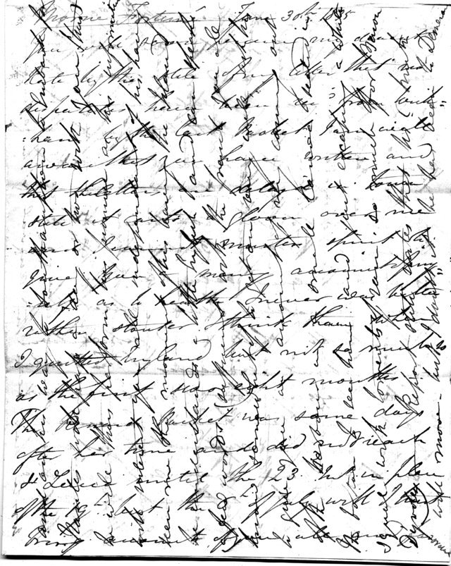1st July 6AM: the Gun has just fired & I see the mail boat coming round Pigeon Island. The party at dinner was rather slow – a Mr & Mrs Berril, a Mon Geonette who made some sort of a shew in playing & singing in the evening, a Mr & Mrs McFarlan just arrived from St Kitts to relieve Mr Mallassey in the Commissariat, the lady looking like a dried Herring & the Mr like a horrid Turk, old Judge Bent looking miserable and sickly, Mr Bruce 76 and a young man by the name of Burt, & Dr Evans. It was rather stupid & I was happy to get to my bed. Adieu my dear Kate – kiss the dear girls for me & regards to Miss Parker. Does Jane continue well? Remember me to her and regards to Mr Hawker, Aunts & MOB. If I can get them in time I shall send you more preserves by the next vessel. How are dear Fred & Augt? The former did not get the step he expected in the Regt. Accept my best love & believe your Fred.