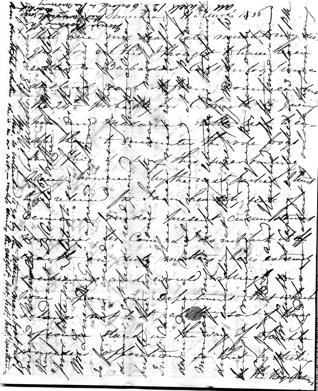 Still here my dear Kate much to my disgust for ere this I thought to have been settled in Barbados. Capt Victor I understand reach it from Dominica about the 24th. Probably Sir C Smith is giving him and Madame a little rest to enable them to encounter the vile frogs, sand flies &c &c of this sugar boiling place. However, by the next packet I trust to be relieved for I am heartily sick of Demerara under present circumstances. Moreover Sir Com & I do not hit it off exactly on duty matters. He is extremely overbearing and would willingly impose upon our Department that which belongs not to it. All this sort of thing I of course stand in the way of, which he considers opposition, so that by sticking to the Regulations laid down for our guidance an Engineer in charge is sure to clash with the Govr, unless he happens to be a superior high minded fellow who sees clearly before him and does not interfere. This man appears to be the same to all and to be on good terms with him would quite unfashionable. After all it amounts to nothing, still is an additional cause for wishing to get away. If I have the good fortune to plant my foot in old England again, how I will make you laugh at some of my adventures, particularly the official. No letters my dear Kate by the last mail boat which anchored here on the 4th, but of course the package has been detained in town. On paying T Naghten a visit I understand that you were all well, had passed a day at Crofton, Mrs N being quite delighted with you all. It was a great disappointment but I hope the next will bring the stray letters & my successor Capt Victor with the order to depart. The only novelty I have to inform you of as regards my movements has been a trip to Capoey Port, ordered there by Sir Com. How the Comdg E will admire the proceeding I cannot immagine. It was, I must think, done out of wickedness, as he knew that the offr was expected every day to relieve me, but my good luck with a little activity attended me. I found a Schooner starting on saturday last to the coast of Guiana close by. At ½ past 2 got my traps on board at reached Capoey about eight, meeting with a most hearty reception from Capt Warburton & his wife, Irish people in fact. My companions, Ensign Nicholls 67, son of Col Nicholls RE, which I only then found out, Lt Kemble 67, brother of Mrs Butler’s or ‘poor little me’, related to our friends the Seddons. Mr Liney DC Genl agreed with me that our trip so far was exceedingly amusing. They prepared a dinner, got beds ready and in truth all was bustle. The wife, once pretty, was the most perfect Irish Character I have ever met with excepting described in a novel. I remained at the Port until Monday night preparing Estimate for the repairs & dining each day at their mess, 67th, Madame W being a member. Mind you they have only a company there, and I laughed all the time. We left Mr Kemble at Capoey, embarked at 3 oclock PM, & reached home about 9 oclock the same evening where I found my dog & cat ready to eat me, the only living excepting Kate the Parrot to welcome me. Sir Com thought he had given me work for a week at least, but the good fortune of finding a vessel returning on monday, quite an unusual thing, upset all the plan. Mr Young and Ensign Smyth have return from Cuba, the former unsuccessful in his mission. The Spaniards would give up one Negro, and it is reported that our Govt has been completely cajoled, paying large sums on the capture of these Slaves under the supposition that they thus free in the Havanna according to treaty, whereas they are in a worse state of slavery at the present moment than they would have in the British Colonies under the former system. The next project is to import or rather land the Captured here until the working population is sufficiently increased to carry on the cultivation, sugar of course, which it is said brings a great price at present. Among the little changes of little people, Capt Sidley, our acting Brigade Major, has been ordered to join his Regt 86, a Capt Rose 69 acting in his berth. Our Chief Judge in St Lucia has joined here in that capacity, the Govr Genl Sir Lionel Smith is going to Jamaica, with all his staff of course. Of these several I shall miss. A Col G MacGregor I understand is to be Govr and Sir S F Whittingham to comd the troops with rank of Lt Genl. Time will shew but I think Sir C Smith RE will not like to have the comd of the troops taken out of his hands. Orders have been recd here that Engr officers having so many responsible duties are not to take Garrison. The Govr think I have set this going, not the case, and directs that I am to be kept on duty as usual. Thus I was yesterday President of a Court Martial and today officer of the day. This will cause a kick up no doubt but as I am going away I would rather avoid it. I saw Fred name in the Gazette & congratulate him. Did the rogue treat you all? You did not report how your car looked in its new colors & the carriage – what have you done about the repair required? I try to keep up in spirit but really am so sick of this place it requires a great effort. Are the Miss Gardiners well & Lady G? – remember me kindly, I wish I was near them. Had I not heard from Naghten how well you all were I shd have been in a fuss, but now know that your letters have been detained. Mrs Naghten writes that Augustus has grown tall. I wish his name well on the H Guards list. There appears no chance of promotion for me – I must go thro my term of exile. They are sending our people to this climate in lots. Capt Streatfield I hear has returned home. I’m getting deep into the 3rd year. Regards to my Uncle and Aunts at Catisfield & to Mr H Hawker & his family if in your routine. I continue well & shall be jolly when in Barbados no doubt, but here all one’s friends, so soon as made, start away, it appears to me. Thank Fred, Gusto & the dear Girls for their charming letters. Remember me kindly to Miss P. How is Jenny? Believe 