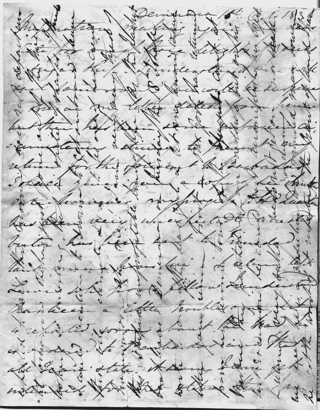 Preparations making again my dear Kate for one of those delights of yours, a sugar ship. I understand one will sail tomorrow. You will be surprised to observe my letter dated from hence, but there has been some unforseen circumstances stirring to prevent my return for the present to Barbados. I shall give you a copy of Sec L Smith’s note, however my progress to Hd Quarters has been very unexpectedly arrested. Victor has been sent to Trinidad, tant mieux pour lui, to relieve Capt Lewis, who, poor fellow, I understand has been a little troublesome & it is reported wrong about the head. He is ordered to Barbados and that is all I can state. It seems I am yet intended for that station, thus I am doubtful what to do for the best but think of unpacking de toto; it has unsettled me dreadfully. Still, some good has blown with the ill wind – a fire has raged at Barbados & many very agreeable persons have fallen victims & if I am to move I would prefer the voyage after the Hurricane months Sept & Oct. ‘Privt & Confidential 13 Sept 1836 (rcd 23rd) My D E, I am sorry to inform you that from circumstances arising out of errors in judgement and over zeal, Sir C has been compelled to remove Capt Lewis from Trinidad, which so far affects you that Victor, who was to have relieved you, is obliged to go to that place. Your removal therefore at present is I believe impossible, but I think I may venture to say that Sir C Smith will not forget your wishes on this head. You are well out of the scrape – Death is busy here, amongst others to the fever now raging. Poor Le Fevre has fallen, a sad blow to his family, Les Smith.’ So I may yet take Barbados on my way home. How have you managed to make up your mind that I am to be relieved after three years’ service? The period I have always understood was 4 and much fear they will take care to keep me the full time. Should such an order arrive & I find myself embarked, my delight would be overwhelming – nous verrons. I was exceedingly happy to receive letters from you again. It appeared so long between the periods from the Packets having bad passages but still I have recd yours up to 14 Augst, only they are sent to Sir F Mulcaster into the [word missing] & are one packet late always. He [word missing] on the back, ‘tell your friends to put the address on a separate piece of paper’. So Fred is off – he must have joined his Regt ere this & you heard of his having so done. He seems a nice fellow & to have kept you all alive. His visit will have unsettled Gusto I fear who ought, dear fellow, to be employed in some capacity now. I feel extremely anxious about him and wish, independent of all other object, that I could get home for his interest. The vessel, Sisters, expected to sail this morning does not depart until tomorrow. She has just gone out of the river, looking so inviting that, in spite of sharks, I think I could venture to swim to get on board, leave this vile climate &c &c to be one of her crew tomorrow. Ah me! I am very very tired of this stupid unprofitable kind of life. As the packet boat leaves Demerara on tuesday the 18th I shall write to one of the dear girls & let me know which letter you receive first. Our Govr has returned from his second tour of the Essequibo coast. At Berbice they patched up an address but on his last excursion he could not accomplish his object & returned very sulky. We do not get on, nor shall we ever – he is a vindictive low minded man, however he got the worst of it respecting the Grant of land. I have put a stop to that affair & nobly supported by Sir C & the Govr Genl. I wrote you word that I was at Ld Smyth ball, stupid affair, supper laid in the same room we danced in, consequently covered with dying Mosquitos and dust. As you will have a second edition, I shall make this a short affair and end it after my solitary dinner, if alive enough. The Sisters leaves at eight tomorrow. Tell my young maidens & Gusto that I have at last procured a superb blue & yellow Macaw, so tame and such a beauty. I shall not send him immediately, but by some favorable & cheap opportunity. A ride may enliven my ideas, so here goes: ‘Edward, Horse’, ‘Yes Massa’. Both the bands playing, 67 & 69, but only two carriages filled with rum people and a crowd of Black & Whity brown listening. After a gallop I returned to a very tough beef steak which is generally the case in this climate, and having got over the meal which I detest, am again enjoying a scribble to you dear Kate. It vexes me exceedingly to get your letters of such an old date, but as that of the 12th Augst now lays before me I will reply – the happy days in Scotland about this date never to return. I feel as young and as energetic as heretofore, but I suppose should break down if put to the test like the old hunter. In riding home today I joined a Capt Adair who proved to be a relation of the 38th man, a gentlemanly young fellow. I recollect the conversation with him brought about the locality of Weedon & the Osbaldistons’ hounds & the Duke of Grafton’s, & only an hour since I was relating my return home to Weedon finding the Foolscap letter & order for the W I. At this moment I can fancy I can see dear Katy’s countenance when I broke the disagreeable intelligence to her. Our conversation closed as we separated, each to his dull mess, that [word missing] our full period out here now on the spot was so great [word missing] object, both feeling that we had gained the best side of the period of servitude that the remainder of our transportation would be to be tolerated. In one of your recently received letters you state that you have recd an abstract & that I have drawn more here than at St Lucia. You must be in error for months after I joined here I did not draw on England. Time will not admit to my refering to dates now but I have them & astonished I am when I look back that I have mounted myself, dressed, fed, drank, & appeared as in comd, rather miserabl
