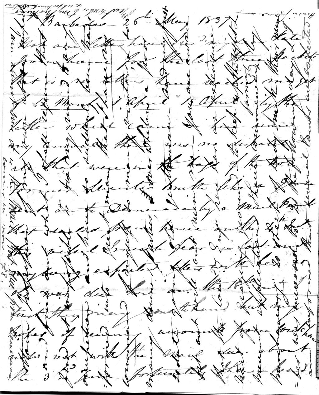 Not one letter have I recd my dear Kate from home for the last three packets, that is no letters have reached me yet of 15 March, 1 April, 15 April. By the latter which came in here since my arrival there was no dispatch & all that were in the bags of the two former, Leicester Smith, like a goose, sent on to Demerara by a Mail Boat that sailed from hence on the 4th Inst. This vessel I much fear is lost and my long expected letters with her, as she was due here on the 18th inst. I trust they may come to hand but my hopes of receiving accounts from Wickham now rest with the Mail due about the 3rd June. Fortunately I have heard through a round about channel that you were all well at a very recent date. This was from a Lt Monday R Artillery who is now here waiting for his passage to Trinidad to take charge of the Artillery in that Island. He landed with two companies of RA from the Sovereign Transport on the 20th after a passage of 33 days. Ask my niece Miss Fanny Gardiner to describe the good looking Bombardier. He is a merry and gentlemanly fellow & I think he told me he had met you all, moreover corresponds with some of the ladies at Roche Court. You may scold about sugar ships and letters not coming regularly, my lady – have you ever been 3 months without a letter? It has made me feel out of temper from the moment I found that Smith had sent them away. There is another gentlemanly and agreeable young officer here who has some knowledge of you – Mr Thistlewayte of the 36th Regt. Is he not a brother of Lady Collier’s? I dined at their mess yesterday when we drank champagne together. Capt Tinling’s brother in the Navy is here in command of a fine Steamer. He has been to call frequently. He is another young man and looks upon me quite as an old acquaintance. The Belvidera is here waiting to be relieved. Of course I have renewed my acquaintance with Capt Strong and his officers, in fact I have found so many old friends here that I seldom dine at our mess. Lady Smith still occupies the Comding Engr’s quarters, consequently I have not yet enjoyed any of its comforts, of which all, from the General downwards, envy me. If it were possible, I would gladly allow her Ladyship to act as Engr, could I by the exchange just find myself with my Wickham pets. I have the same feeling today as you occasionally complain of, and for the life of me cannot write with spirit. By the next packet you will have something more worthy the appellation of a letter. The truth is yours have not reached me and altogether I feel so unsettled until I obtain possession of my own abode, unpack, and find out what I shall require, that I find it impossible to fix my mind to any occupation, and have so suddenly been transformed into a great man that I have no command of myself. So many visitors & so many dinner parties overwhelm a poor sedate going old gentleman, and my first fit out will out ruin me. You are aware that the Comdg Engr here has an extensive tract of grazing ground. To keep up the right & prevent applications I have commenced farming by purchasing 20 sheep of Lady Smith. Their number was increased to 21 the following day & I am informed that several lambs are expected. I have also purchased as follows: 2 young heifers of Mi-lady, and out of the Artillery’s Officer’s stock on board the Sovereign, a lady pig, a lady goat & kid. These, with my Horse, Monkey & 2 Macaws, a Red & a Blue, & 3 black serts are the total of my live stock at present, but as the flock are likely to put a considerable revenue into the Lt Col’s pocket, I must get a stock gradually. Mr Mundy has just been here to ask what he shd say for me to my nieces to whom he is writing. I have requested him to add How dee &c & to certify that I am in good condition. Shot Hall is a pretty place with every convenience for a family, but what is all this to me without a soul to enjoy it? The Comd here is more lucrative than I supposed, unless they cut it down. In addition to my double pay, I understand the Command entitles me to a pound a day to cover expenses attending the inspection visits to the Islands. Keep this to yourself, I request, as I am not in the first place certain of more than 10s and it’s well not to have it talked of. I shall claim it on the Duke of Wellington’s order which is forthcoming if required. Sir C Smith recd 30s, the extra 10s as Senr Officer of Ordnance. Why my dear Kit, you would be a little queen out here could you but stand the baking. A signal now flies for a Mail Boat to Leward. This may be the one due from Demerara. I find myself so much the master of my time and as it were free from controul that I long to be on the move to feel the truth of my independence. I like the Genl very much thus far. I understood Dr Whyte he was well acquainted with Lady Knighton – I shall ask him. Where is my net? Epaulettes? What shall I do to fill that large house? What has been done about Gusto? I am exceedingly anxious to learn. Through T Naghten I think it was, the information came that Mrs O’Brien had been ill & that you were with her. I trust all is right again. Regards to her, Mary & my Uncle – I wish he would write to me. Remember me to Mrs Hawker & Mrs Naghten. Love to yourself & my dear children, not forgetting Miss Parker & Roche Court. Adieu dear Kate, Your aff Fred English.