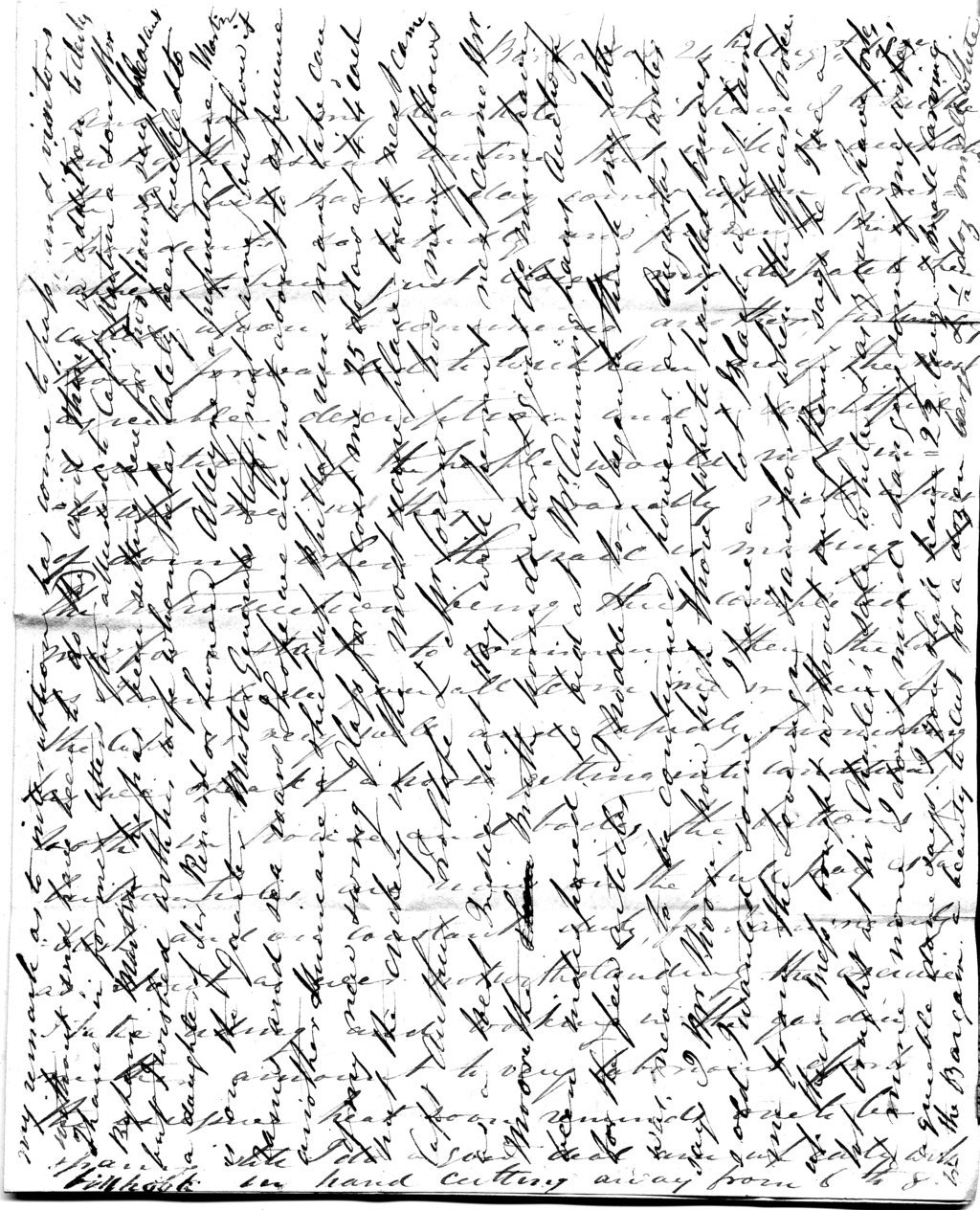 My remark as to interruption has come to pass and visitors without end have been to do the civil thing in addition to clerks. I have in former letters often alluded to Capt Martin, a son of Sir Byham Martin. He has been sitting here for two hours, very pleasant, but I wished with his wife whom he has lately been buckled to, a daughter of Sir Renard or Leonard Alleyne, a proprietor here. Martin is on the Quarter Master General’s Staff. Next came – but how it rains and sea roars, I hope we are not about to experience another Hurricane – ‘Shut up, Phillip, run, man, take care of my new swing Glass for it cost me 25 dolars at 4s 4d each. Put the crockery in the most secure place’ – but next came Capt Arthur Trollope & Mr Connor, two merry fellows as a West India hot day will permit. Next came Mr Moore, the Smith, horse doctor & goat do, mine having been indisposed. He bid at Mr Cunningham’s Auction for the few articles I nodded to. I began to think my letter was never going to be continued, however, as Augustus writes, says I ‘Mr Moore, how high those white handled knives sold, I wanted some.’ ‘I have a lot Black which came me from the Sovereign Transport when the officers broke up their mess, bought without seeing them,’ says he. ‘I’ve a lot bought at Sir Charles’s sale, white, & as yours have forks & mine none, I don’t mind changing some of my wife’s.’ ‘Agreeable, done,’ says I, ‘you shall have 22 large & small carving in the Bargain, a beauty to cut, for a dozen large & ½ dozen small white.’ ‘Well,’ say he, ‘them black will suit me for every day best,’ so the exchange took place. How fortunate it was you did not succeed in sending my famed Epaulettes by the Sovereign – she got on shore & they might have been lost. Certainly my dear touching wife, I never did more than laugh and joke respecting the non arrival of the said Epaulettes, for in truth I never felt vexed or hardly thought on the subject. Your letter 29th June is now in my hand and the following sweet extract of thorns in my eye: ‘All this you will learn after I have had my full share of abuse for want of thought, neglect and all sorts of Epithets, and every letter that comes till you get them will annoy me more and more.’ I cannot say more than that you are a very funny fellow. I did not owe Lloyd one shilling – Fred may. On the 21st of Feby or Jan 7 34 or Feb, I paid myself to Mr Something Faulkner for James Lloyd No 25 Coventry St 3£ 7 6 for 2 pr of boots with boxes in the heels & one pr of spurs, the receipt is now laying before me, so I am not to be so done, let him know, it must be Fred. Sir Samford Wittingham I reported to you is getting quite fond and very attentive – trust he won’t turn troublesome – dined there last Saturday & next Saturday the day after tomorrow dine with the Govr to meet him. Tomorrow dine at the Store Keeper’s, his first effort to the C R Engr. He has an ugly little flirting wife who patronises me, says I have such winning ways. I have only dined at Mess twice this month but occasionally chez moi. The sun is setting so by by for today. 25th: Well, I had just closed when Col Tyler rode up, ‘English, come on, dine with me, where do you dine? Come, man, come, Capt King, DA Adjt Genl has promised such a piece of mutton and the wine all ready in ice.’ ‘I’m writing to my wife & intended to have my soup at home, but am just closing for this day & will order my horse.’ This was ½ past six – rode & dined with him & home early to bed, heavy rain & sky looking queerish. On our way to Tyler’s overtook Col & Mrs Senior 65th – they dine at Mr Eaton’s today and I have just ordered a posie of Roses to be sent to Madame S and a bunch of cabbages & carrots to the latter little affair. This morning, 25th, a gale commenced and the Flamer steamer had scarcely anchored when both her and the Carron put to sea, the packet having shewn the example, thus no mail will be made up today. I shall therefore keep this open until the vessel returns. The wind & sea has been for the last 4 or 5 hours very high – one vessel I observed with a signal of distress, probably sprung a leak. All the others as yet ride the gale, or I may term it a hurricane’s infant, for it is unlike an honest English gale of wind that attacks you fairly. Here the wind takes unfair advantage and puffs away from all sides at once. On the 2d inst the Town and shipping suffered dreadfully – about 32 vessels driven on shore or sunk, a fire in town having the evening before commenced the mischief. The loss is to a great amount we are informed. Send me lots of garden seeds. Tell the chicks that I have butter every morning from my farm made in a bottle. The gale moderates. The shop I procured my silk neckband at was W H Abbott & Co, 37 Cornhill, two doors east of Birchin Lane & I gave 14s 6 making &c for two but they would have made 4 at the same time. I bought 1 Doz pr long Calico Drawers, 3 shil a pr, the last 6 are now in wear & a great comfort they have been. If Gusto has time, tell him to get me some and send them after the 30th of Sept, unless sent by packet which is generally a secure mode. Shall close until tomorrow.
